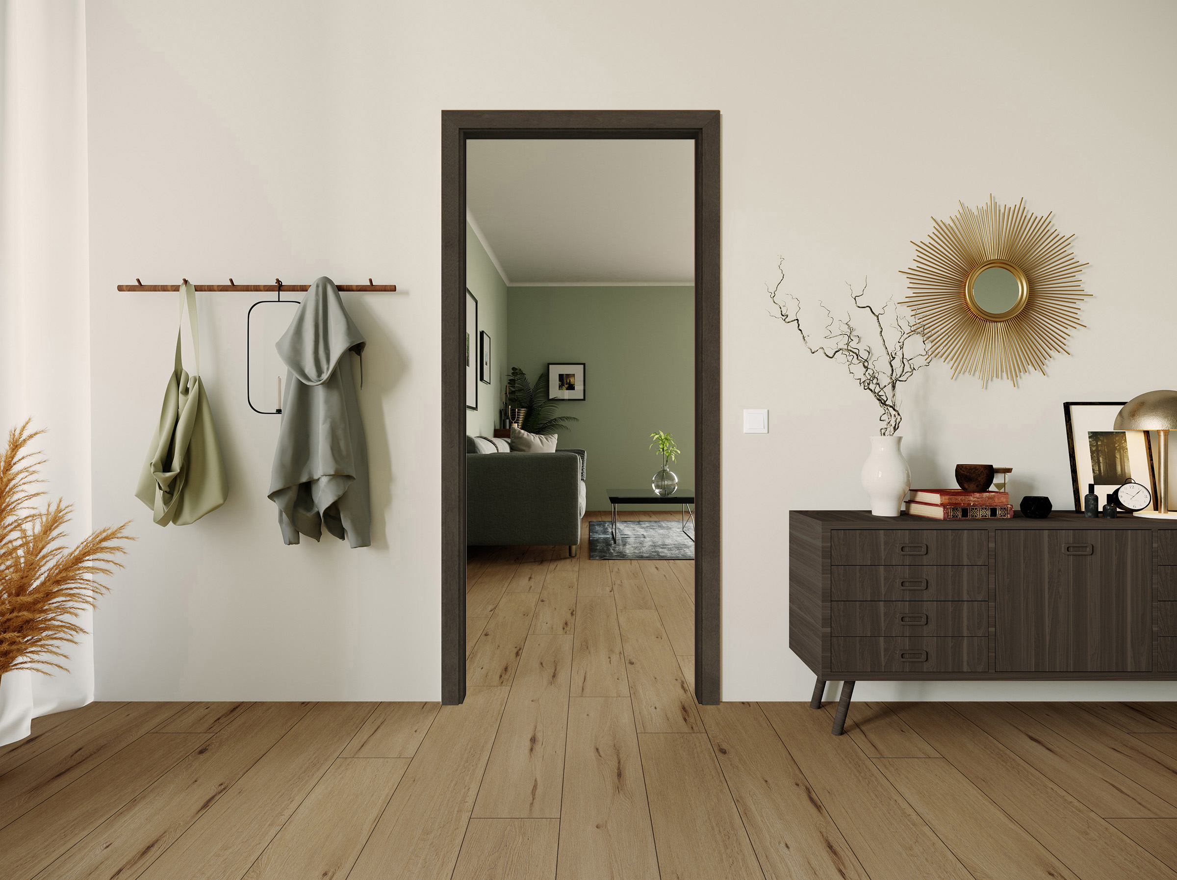 Charakterstarke Natur: Unsere Zarge Furnier Antik Eiche Titan überzeugt mit markanten Astlöchern und Rissen, welche mit einem schwarzen Vlies hinterlegt sind. Dadurch entsteht eine einzigartige Optik und Haptik, wie sie aus der freien Natur bekannt ist. Das lebhafte Farbspiel in leicht kühlen Grau-Braun-Tönen macht die Zarge zu einem charakterstarken Unikat und zu einem Highlight in jedem Wohnraum. Die Mattlackierung sorgt zudem für eine sehr moderne Wirkung. Als Durchgangszarge mit einer zeitlosen Eckkante kommt sie dort zum Einsatz, wo keine Tür gewünscht oder technisch nicht möglich ist. Sie sorgt für einen optisch ansprechenden Durchgang sowie für ein offenes Wohngefühl. Auf Bänder, Schließbleche und Dichtungen wird hierbei bewusst verzichtet.