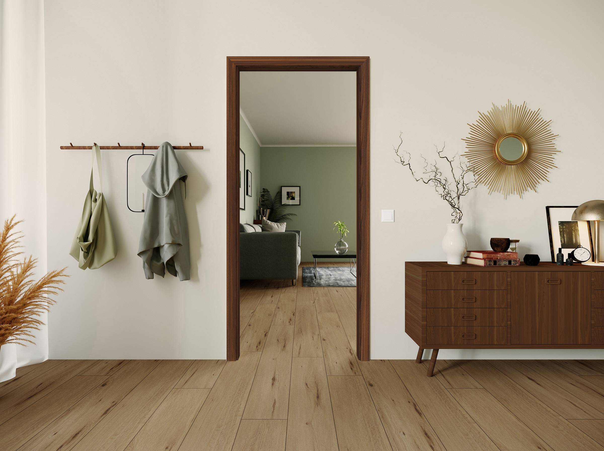 Charakterstarke Natur: Unsere Zarge Furnier Antik Lärche Smoke überzeugt mit markanten Astlöchern und Rissen, welche mit einem schwarzen Vlies hinterlegt sind. Dadurch entsteht eine einzigartige Optik und Haptik, wie sie aus der freien Natur bekannt ist. Das heimische Lärchenholz ist besonders hochwertig und zählt zu den härtesten Hölzern. Bei diesem Furnier wird das Lärchenholz geräuchert und erhält dadurch einen braunen bis dunkelbraunen Farbton. Das daraus resultierende kontrastreiche Farbspiel macht diese Innentür zu einem charakterstarken Unikat und zu einem Highlight in jedem Wohnraum. Die Mattlackierung sorgt zudem für eine sehr moderne Wirkung. Als Durchgangszarge mit einer zeitlosen Eckkante kommt sie dort zum Einsatz, wo keine Tür gewünscht oder technisch nicht möglich ist. Sie sorgt für einen optisch ansprechenden Durchgang sowie für ein offenes Wohngefühl. Auf Bänder, Schließbleche und Dichtungen wird hierbei bewusst verzichtet.