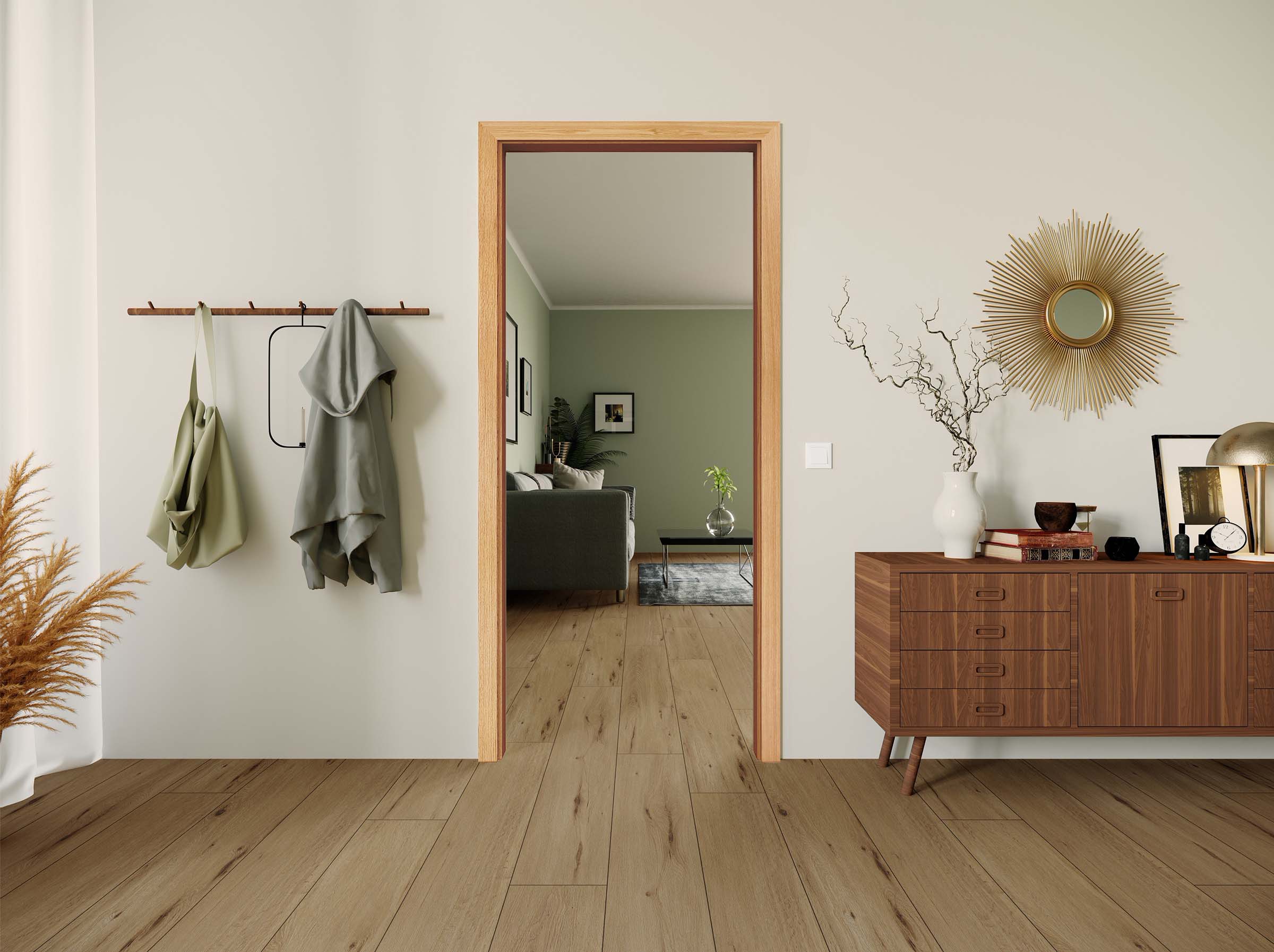 Ein Stück Natur: Unsere 60 mm breite Zarge Furnier Klassik Eiche Hell mit Eckkante ist der ideale Begleiter für unsere Tür Furnier Klassik Eiche hell. Das Echtholzfurnier ist Ausdruck für klassisches Design gepaart mit ganz viel natürlichem Flair und ein wahres Unikat, denn jeder Baum hat eine ganz individuelle Maserung. Als Durchgangszarge kommt sie dort zum Einsatz, wo keine Tür gewünscht oder technisch nicht möglich ist. Sie sorgt für einen optisch ansprechenden Durchgang sowie für ein offenes Wohngefühl. Auf Bänder, Schließbleche und Dichtungen wird hierbei bewusst verzichtet.