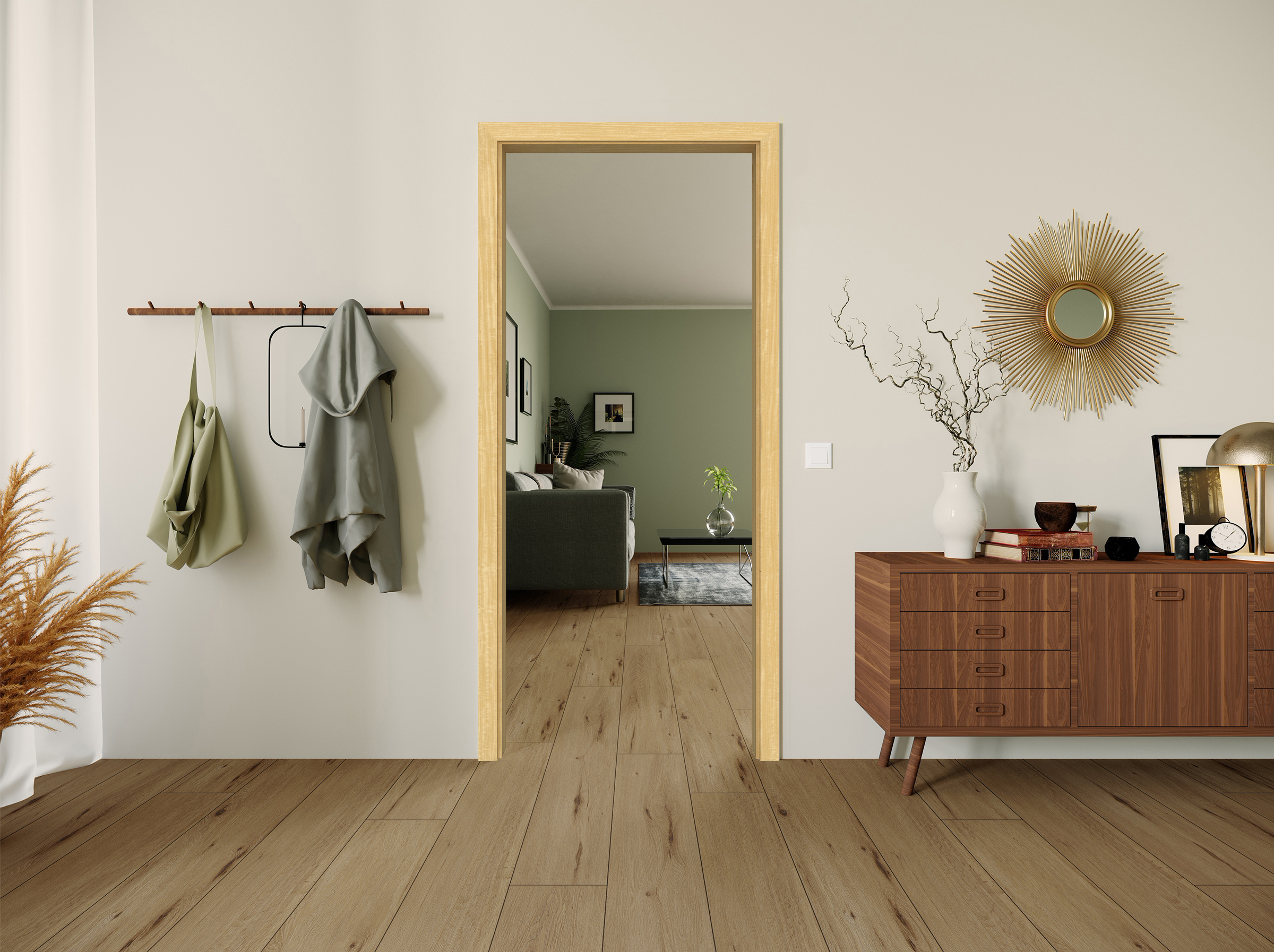 Ein Stück Natur: Unsere 60 mm breite Zarge Furnier Klassik Limba mit Eckkante ist der ideale Begleiter für unsere Tür Furnier Klassik Limba. Das Echtholzfurnier ist Ausdruck für klassisches Design gepaart mit ganz viel natürlichem Flair und ein wahres Unikat, denn jeder Baum hat eine ganz individuelle Maserung. Als Durchgangszarge kommt sie dort zum Einsatz, wo keine Tür gewünscht oder technisch nicht möglich ist. Sie sorgt für einen optisch ansprechenden Durchgang sowie für ein offenes Wohngefühl. Auf Bänder, Schließbleche und Dichtungen wird hierbei bewusst verzichtet.