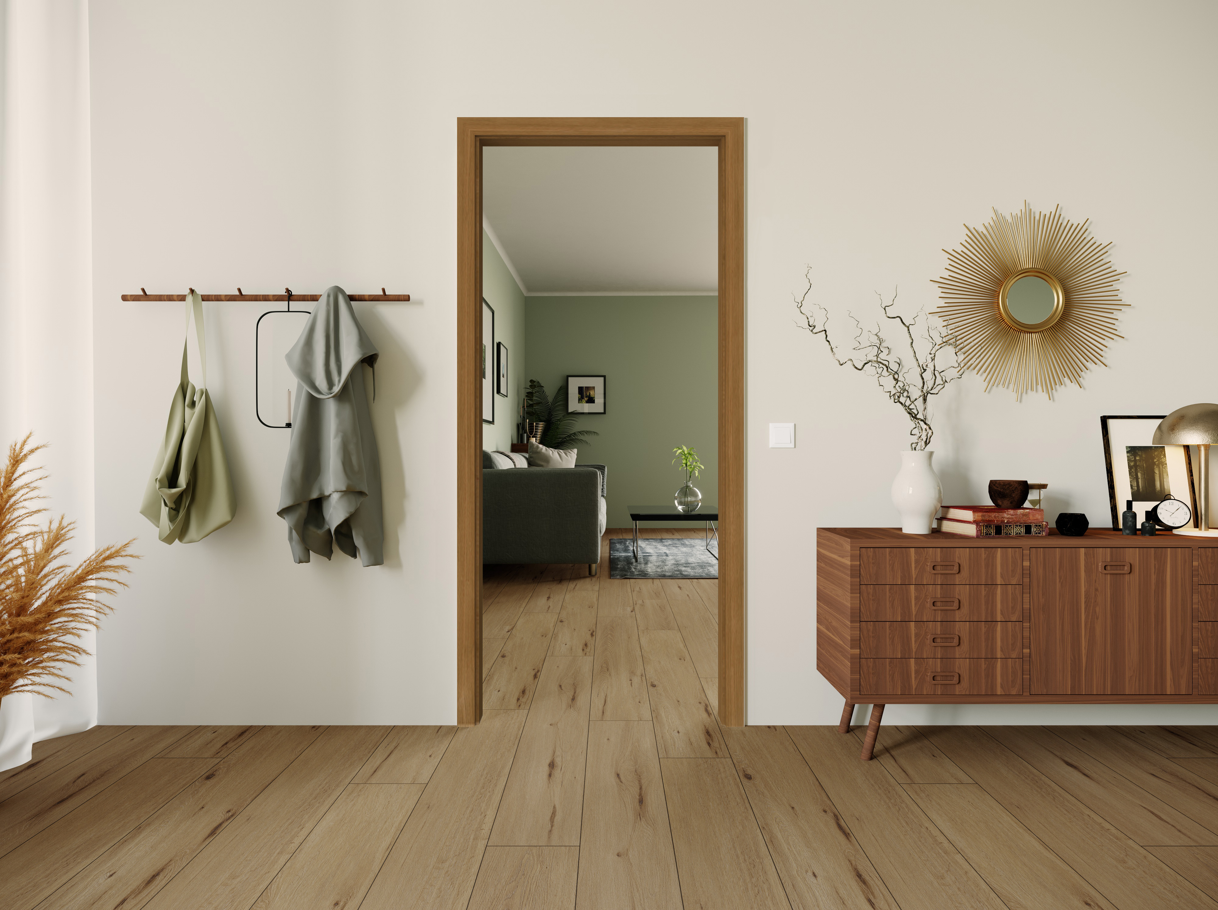 Natürliches Wohngefühl: Unsere 60 mm breite Zarge Furnier Plankeneiche Natur geölt mit Eckkante ist der ideale Begleiter für unsere Tür Furnier Plankeneiche Natur geölt. Durch das rustikale Holzbild wird die natürliche Eleganz des Eichenholzes unterstrichen und dadurch ein besonders lebendiges Wohngefühl geschaffen. Als Durchgangszarge kommt sie dort zum Einsatz, wo keine Tür gewünscht oder technisch nicht möglich ist. Sie sorgt für einen optisch ansprechenden Durchgang sowie für ein offenes Wohngefühl. Auf Bänder, Schließbleche und Dichtungen wird hierbei bewusst verzichtet.