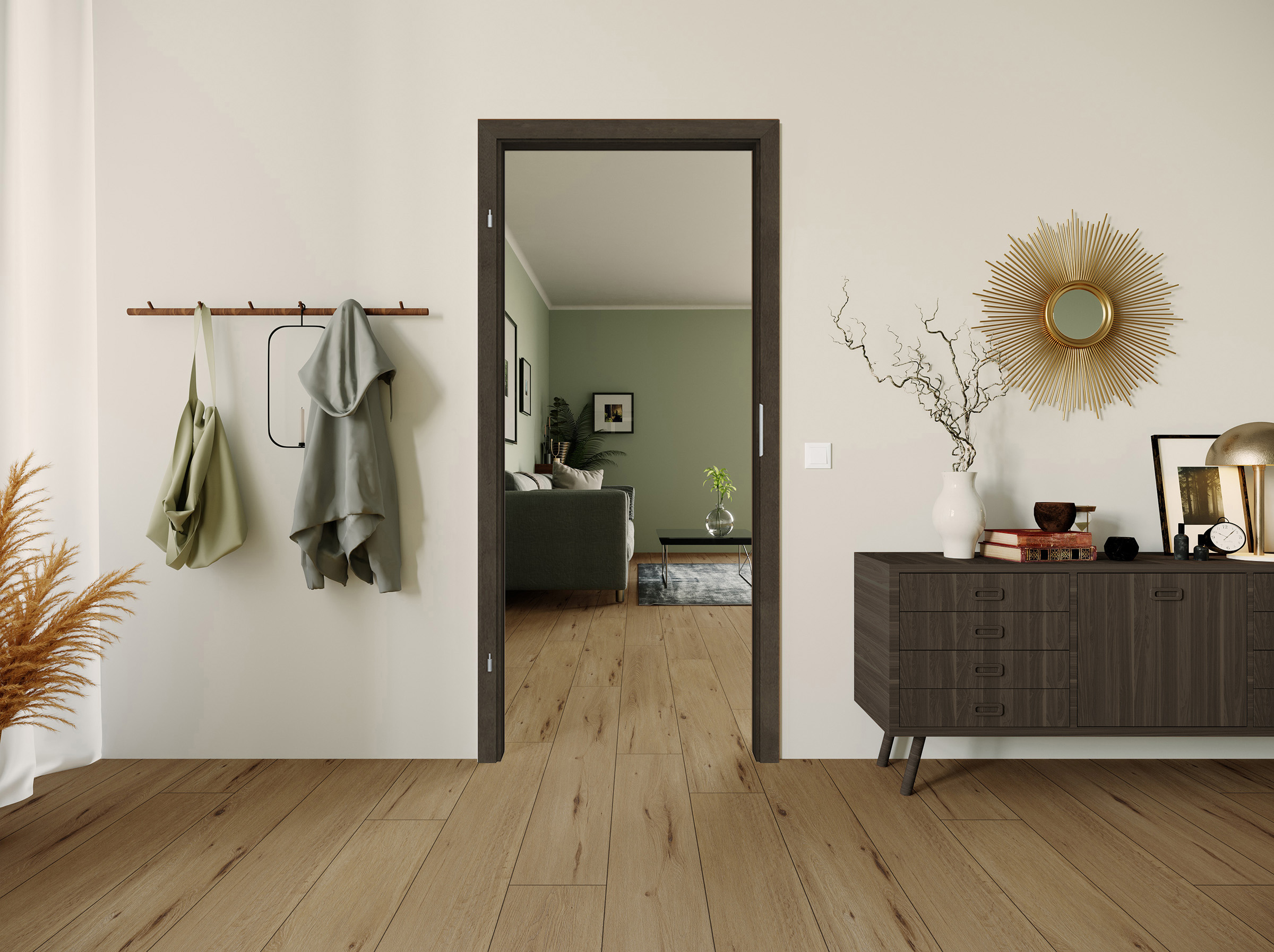 Charakterstarke Natur: Unsere Zarge Furnier Antik Eiche Titan überzeugt mit markanten Astlöchern und Rissen, welche mit einem schwarzen Vlies hinterlegt sind. Dadurch entsteht eine einzigartige Optik und Haptik, wie sie aus der freien Natur bekannt ist. Das lebhafte Farbspiel in leicht kühlen Grau-Braun-Tönen macht die Zarge zu einem charakterstarken Unikat und zu einem Highlight in jedem Wohnraum. Die Mattlackierung sorgt zudem für eine sehr moderne Wirkung. Die Zarge verfügt über eine zeitlose Eckkante sowie eine Bekleidungsbreite von 60 mm und harmoniert optimal mit unserer Innentür Furnier Antik Eiche Titan.